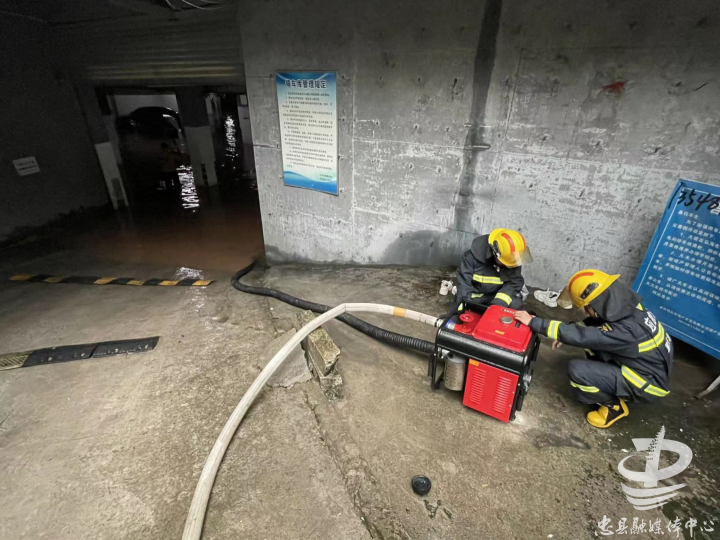 强降雨致车库被淹 消防人员紧急排涝